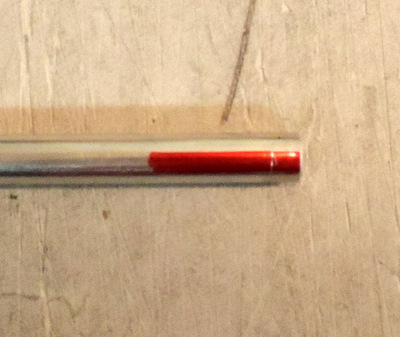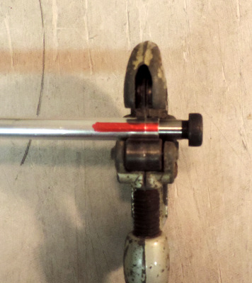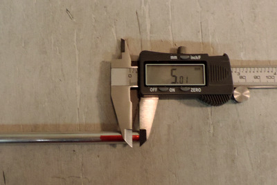 Basic tools needed: Calipers, Marker for contrast (note the tubing has already been coated red), Knife or Scribe and Tubing Cutter. I got mine used at a garage sale! Since this is soft aluminum tubing you'll also need one of the shoulder bolts to keep the tubing from collapsing (see below). | Set the calipers to the size desired, use the lock (the knurled wheel on the top just above the mm/inch button) to hold the position. |