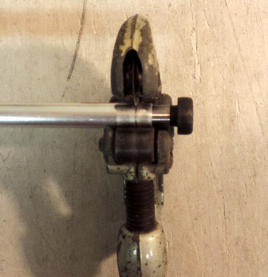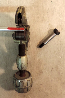 Above: Loosen the cutter and remove Right: Separate the parts. Notice the score mark on the shoulder bolt. It's mostly cosmetic. |