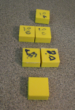 SO I moved on to some real R2 parts - these are called shoulder buttons and are 1 in. in diameter and .625 in. high Right - note that the bottoms are square - printed at .3 layer height and 33% infill. I'm not really happy with the finish on the top. |