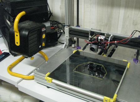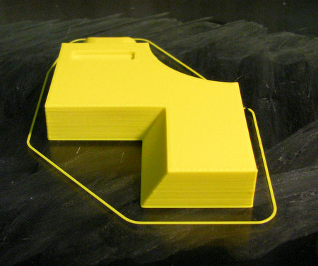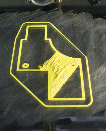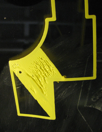 printing envelope. It didn't help this print, which also warped before it completed. I expect I need to turn up the heater more. My basement ambient is around 20-22 C. I was getting about 70 C from the heater, but it was lower at the bed. I'm guessing I need to be a lot hotter. I would tent my printer but I'm afraid of melting printer parts, and then I won't have a printer to print replacement parts with. Apparently I can't print ABS parts with the printer I've got. Catch-22 anyone? |