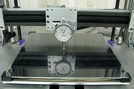 inch 4/40 bolt. You want to do it now to prevent things like the extruder head, or the dial indicator I'm going to use for setup, from crashing into your boro glass surface. |