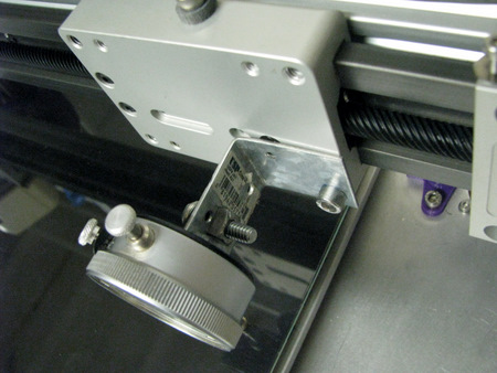 Manually turn the feedscrew on this side until you read zero. Then go to the opposite side and adjust the feed screw there. |