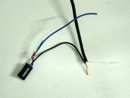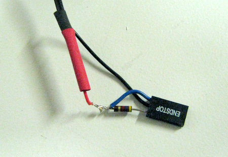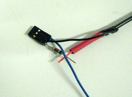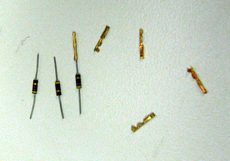 Completed switch wiring with shrunken insulation You will need 3 1/4 watt 4.7k ohm resistors. cut the leads to about 1/2 inch. Crimp on a mating contact. If you are not using a crimping tool you might want to solder the contact. |