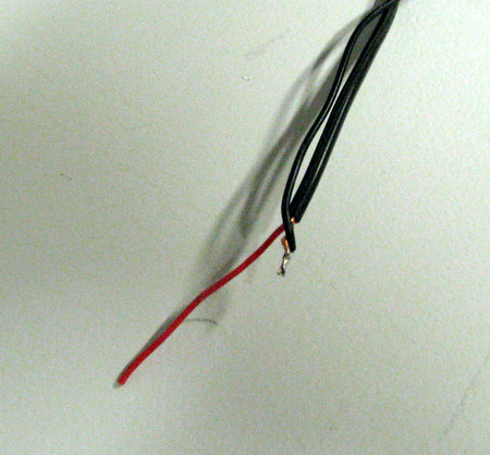 trim the blue wire to length. Remove the insulation from both Twist, solder together, then slide the tubing in place and shrink. |